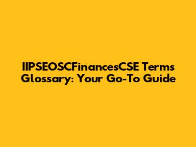 IIPSEO, SCFinances & CSE Terms: A Simple Glossary