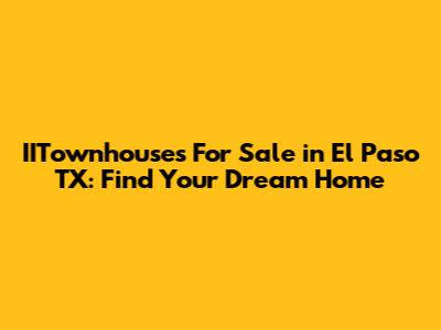 IITownhouses For Sale In El Paso TX: Find Your Dream Home