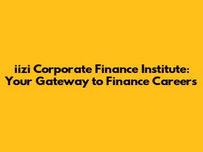 Iizi Corporate Finance Institute: Your Gateway To Finance Careers