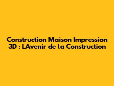 L'Impression 3D : L'Avenir de la Construction ?