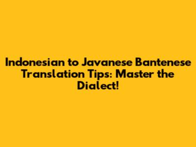 Indonesian To Javanese Bantenese Translation Tips