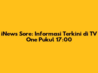 Guys, are you ready to dive into the latest happenings? Let's talk about iNews Sore on TV One, which airs every day at 17:00 Western Indonesian Time (WIB). For those of you who might not know, iNews Sore is a news program that brings you the most up-to-date and crucial information from across the nation and around the world. It’s your daily dose of news, providing insights into current events, political updates, economic developments, and a whole lot more. So, if you're keen on staying informed and keeping your finger on the pulse of what’s happening, then iNews Sore is definitely something you should check out. It's a key program to watch if you want to be well-informed and knowledgeable about what's going on around us.