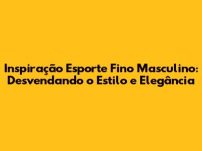 Inspiração Esporte Fino Masculino: Guia Completo Para O Estilo