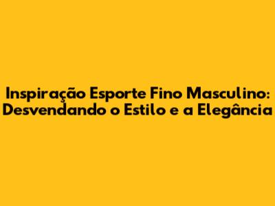 Inspiração Esporte Fino Masculino: Guia Completo Para Um Visual Impecável