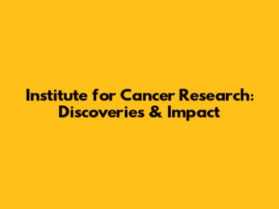 Institute For Cancer Research: Discoveries & Impact