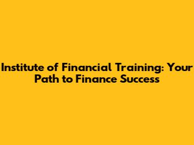 Institute Of Financial Training: Your Path To Finance Success
