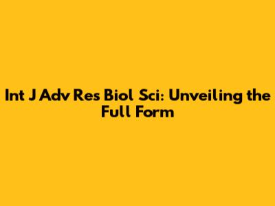 Int J Adv Res Biol Sci: Unveiling The Full Form