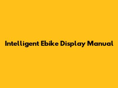 Intelligent Ebike Display: Your Go-To Manual