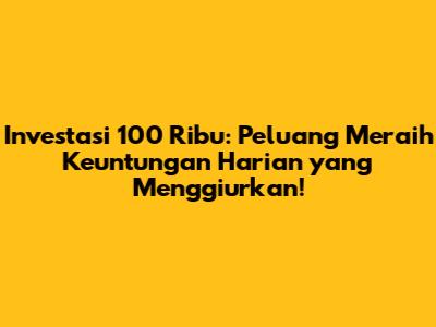 Investasi 100 Ribu: Raih Keuntungan Harian Dengan Cermat!