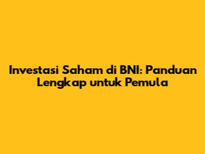 Investasi Saham Di BNI: Panduan Lengkap Untuk Pemula