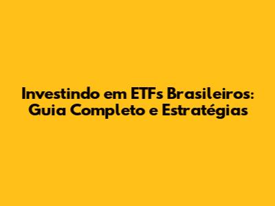 Investindo Em ETFs Brasileiros: Guia Completo E Estratégias