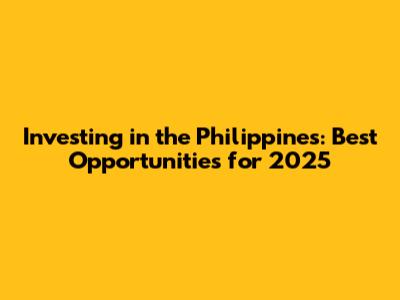 Hey guys! Are you thinking about where to put your money in the Philippines in 2025? You've come to the right place. Let's break down some of the best investment opportunities that could potentially grow your wealth. The Philippine economy is dynamic, and understanding where to invest can make a significant difference. We'll explore various sectors, from real estate to stocks, and provide insights to help you make informed decisions. Investing wisely requires careful consideration of market trends, economic forecasts, and your own financial goals. So, let's dive in and uncover the most promising avenues for investment in the Philippines in 2025.