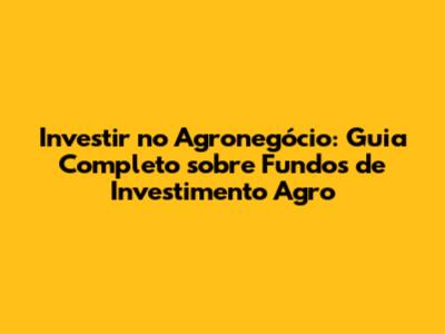 Investir No Agronegócio: Guia Completo Sobre Fundos De Investimento Agro