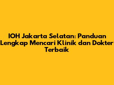 IOH Jakarta Selatan – mencari layanan kesehatan terbaik di Jakarta Selatan bisa jadi gampang-gampang susah, kan? Tapi tenang aja, guys! Artikel ini bakal jadi ultimate guide buat kalian yang lagi nyari IOH terdekat Jakarta Selatan, mulai dari klinik hingga dokter spesialis yang oke punya. Kita bakal bahas tuntas, mulai dari tips memilih klinik yang tepat, jenis-jenis layanan IOH yang tersedia, hingga rekomendasi dokter dan klinik terbaik di berbagai wilayah Jakarta Selatan. Siap-siap, ya, karena kita bakal kasih info lengkap biar kalian nggak bingung lagi!