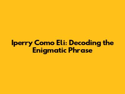 Iperry Como Eli: Decoding The Enigmatic Phrase