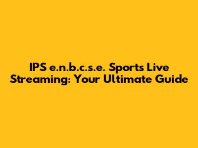 IPS E.n.b.c.s.e. Sports Live Streaming: Your Ultimate Guide