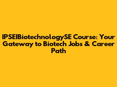 IPSEIBiotechnologySE Course: Jobs & Career Path