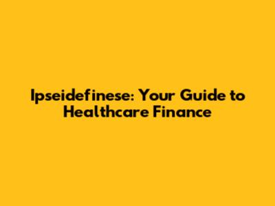 Ipseidefinese: Your Guide To Healthcare Finance