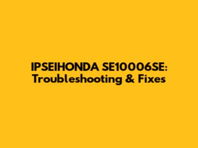 IPSEIHONDA SE10006SE: Troubleshooting & Fixes