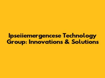 Ipseiiemergencese Tech Group: Innovations & Solutions