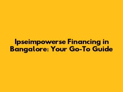 Ipseimpowerse Financing In Bangalore: A Comprehensive Guide