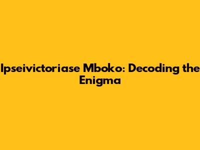 Ipseivictoriase Mboko: Unveiling The Enigmatic Figure
