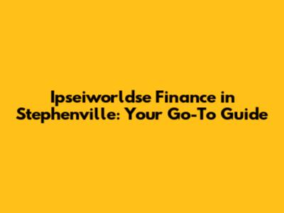 Ipseiworldse Finance In Stephenville: Your Go-To Guide