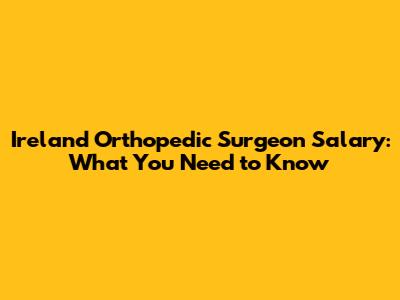 Ireland Orthopedic Surgeon Salary: What You Need To Know
