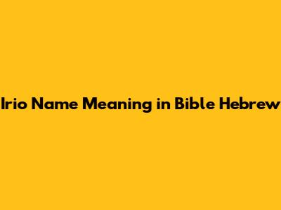 Irio: Exploring The Meaning In Hebrew And Biblical Context