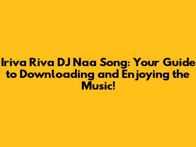 Hey music lovers! Are you searching for the Iriva Riva DJ Naa song download? Well, you've come to the right place! This article is your ultimate guide to finding and enjoying this awesome track. We'll dive into where you can download the song, explore its origins, and maybe even find some cool remixes or related tunes. So, buckle up, grab your headphones, and let's get started! Finding the right song can sometimes feel like a treasure hunt, right? Especially when it comes to specific DJ mixes and tracks that might not be available on all the usual streaming platforms. But don't worry, we're here to make the process as smooth as possible. We'll cover everything from legitimate download sources to tips on how to identify the correct version of the song you're looking for. It's all about making sure you get the best listening experience. We'll also touch upon the importance of supporting the artists and creators behind the music, ensuring that they can continue to produce amazing tracks like Iriva Riva DJ Naa. So, stick around, and let's unravel the secrets of Iriva Riva DJ Naa together!
