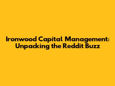 Ironwood Capital Management: What Reddit Users Are Saying