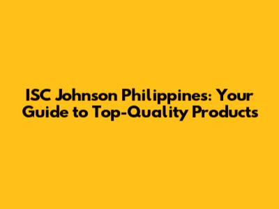ISC Johnson Philippines: Your Guide To Top-Quality Products