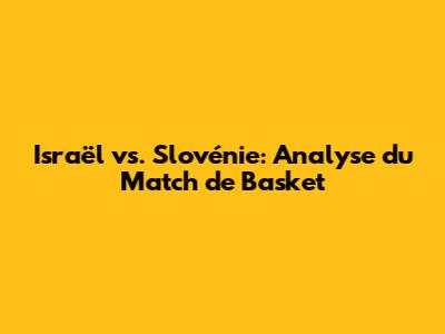 Israël Vs. Slovénie: Analyse Du Match De Basket