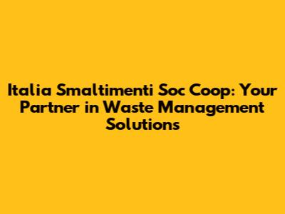 Hey guys! Ever wondered what happens to all the waste we generate? It's a massive issue, and that's where companies like Italia Smaltimenti Soc Coop come into play. They're not just about chucking stuff away; they're focused on managing waste responsibly and sustainably. Let's dive into what makes them tick and why their work is so crucial.