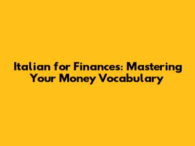Italian For Finances: Mastering Your Money Vocabulary