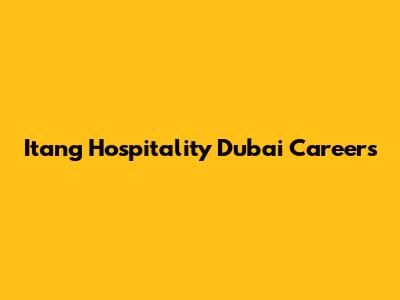 Itang Hospitality Dubai Careers: Your Path To Success