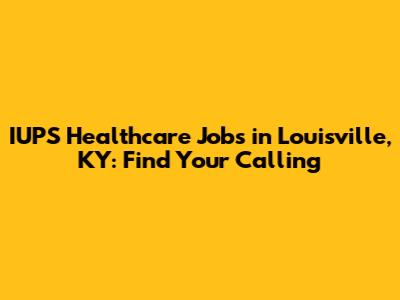 IUPS Healthcare Jobs In Louisville, KY: Find Your Calling