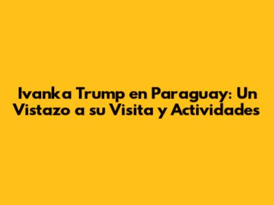 - ¿Qué tipo de proyectos visitó Ivanka Trump en Paraguay? Visitó proyectos enfocados en el empoderamiento femenino, el desarrollo económico y la capacitación de mujeres.