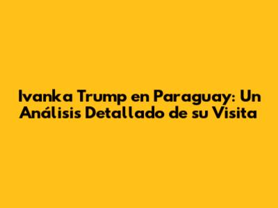 Ivanka Trump En Paraguay: ¿Qué Hizo Y Por Qué Es Importante?