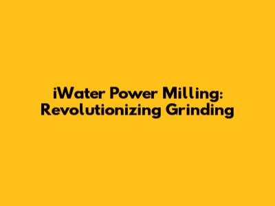 IWater Power Milling: Revolutionizing Grinding