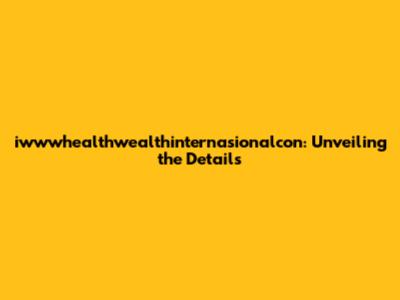 Iwwwhealthwealthinternasionalcon: What You Need To Know