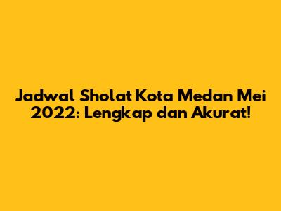 Berikut adalah jadwal sholat lengkap untuk Kota Medan selama bulan Mei 2022. Jadwal ini mencakup waktu imsak, subuh, terbit, dzuhur, ashar, maghrib, dan isya. Pastikan Anda menyesuaikan jadwal ini dengan zona waktu setempat dan melakukan pengecekan ulang untuk memastikan keakuratannya.