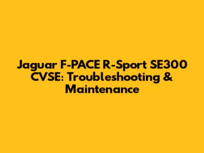 Jaguar F-PACE R-Sport SE300 CVSE: Troubleshooting & Maintenance