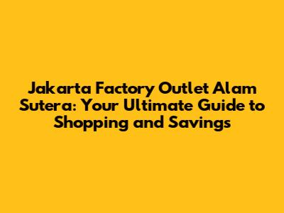 Hey guys! Ready to dive into the world of amazing deals and stylish finds? Let's talk about Jakarta Factory Outlet Alam Sutera! This place is a haven for savvy shoppers looking to snag high-quality goods at seriously discounted prices. Whether you're a local or just visiting, this guide will walk you through everything you need to know to make the most of your shopping experience. From the brands you can expect to find to insider tips on maximizing your savings, we've got you covered. So, buckle up, grab your shopping bags, and let's explore one of Jakarta's best-kept secrets for bargain hunters!