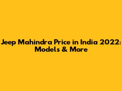 Jeep Mahindra Price In India 2022: Models & More