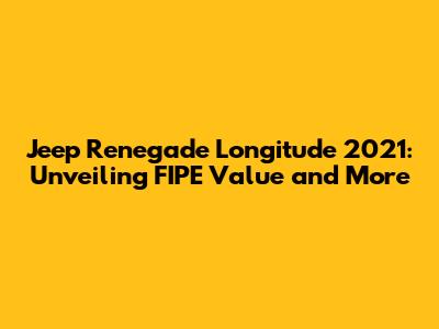 Hey guys! Are you curious about the Jeep Renegade Longitude 2021 and its FIPE value? Or maybe you're just diving into the details of this awesome compact SUV? You've landed in the right spot! This article is your go-to resource for everything you need to know about the Jeep Renegade Longitude 2021, including its FIPE value, key features, specs, and why it might just be the perfect ride for you.