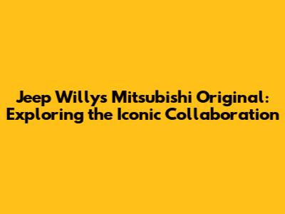 Jeep Willys Mitsubishi: Exploring The Original Collaboration