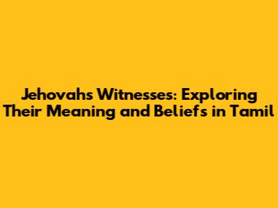 Jehovah's Witnesses: Meaning And Beliefs In Tamil