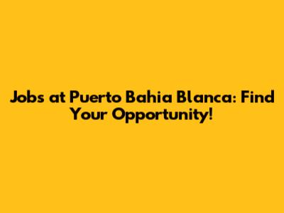 Jobs At Puerto Bahia Blanca: Find Your Opportunity!