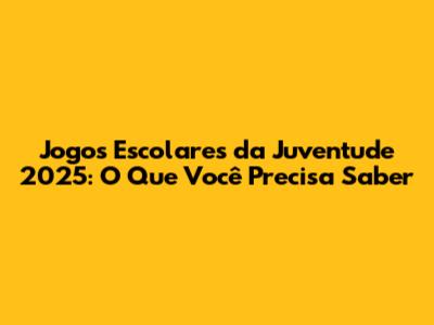 Jogos Escolares Da Juventude 2025: Guia Completo
